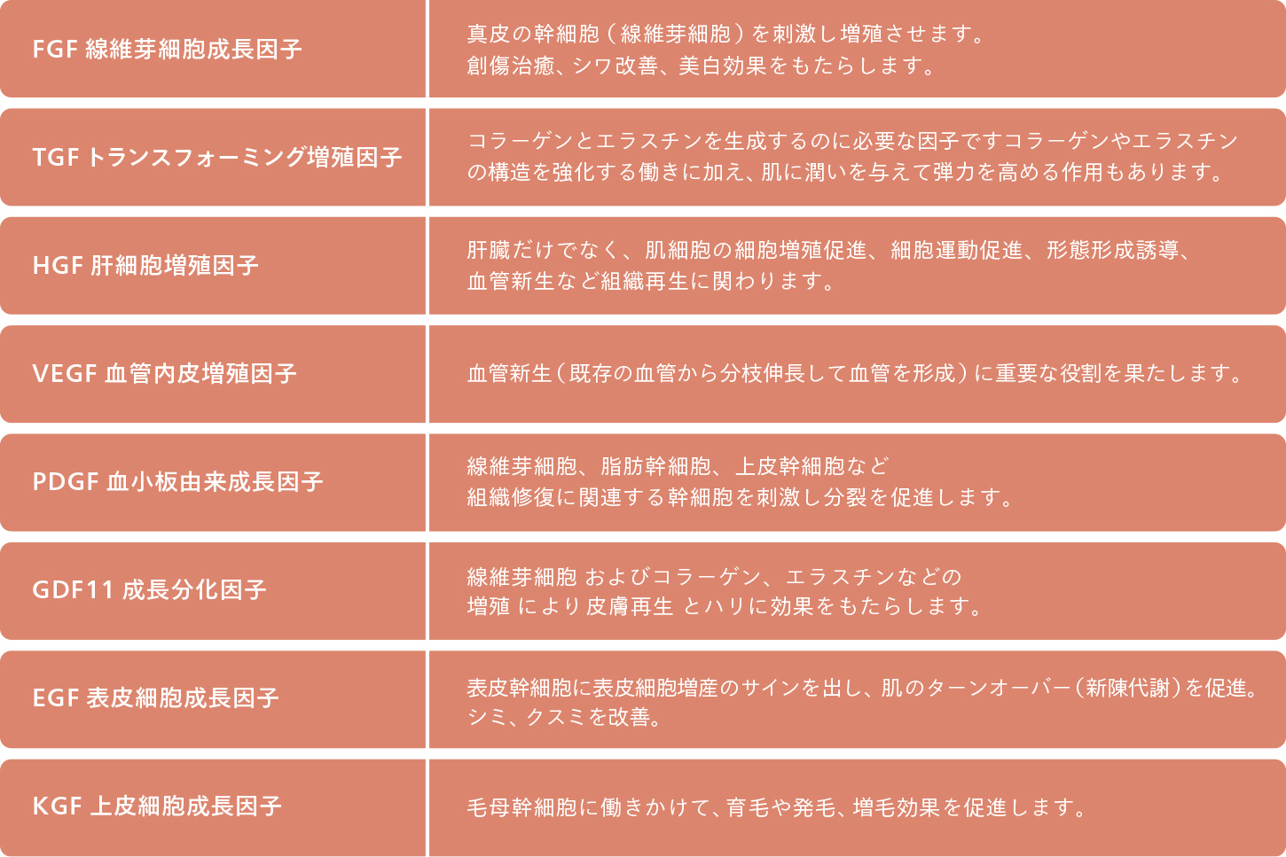 Pure Stem エクソソームに含まれる数十種類の有効成分の中、主要な成長因子(サイトカイン)